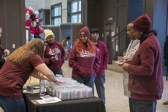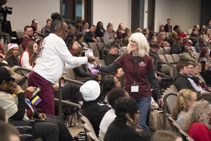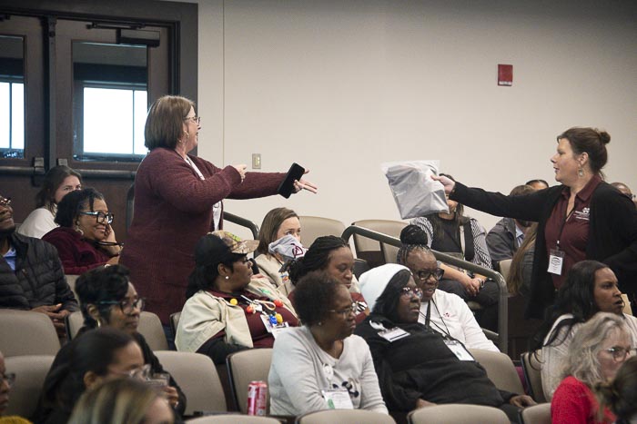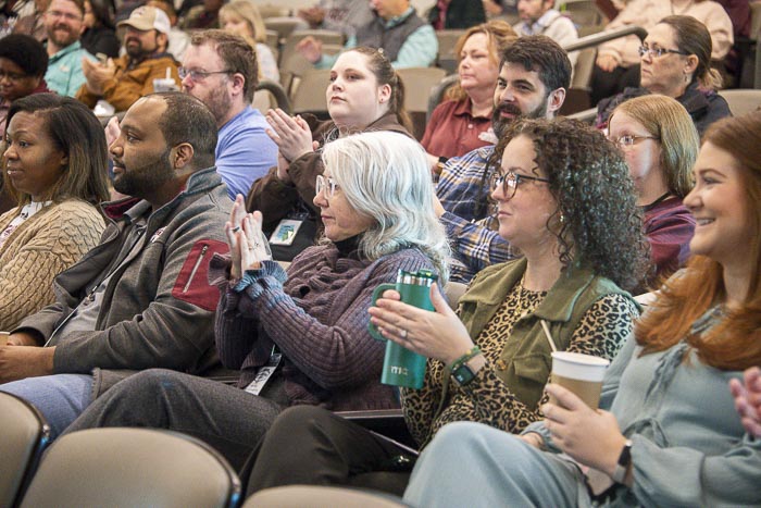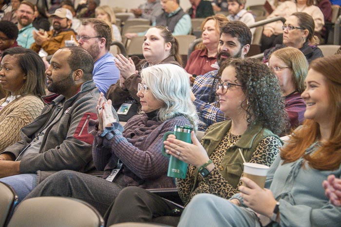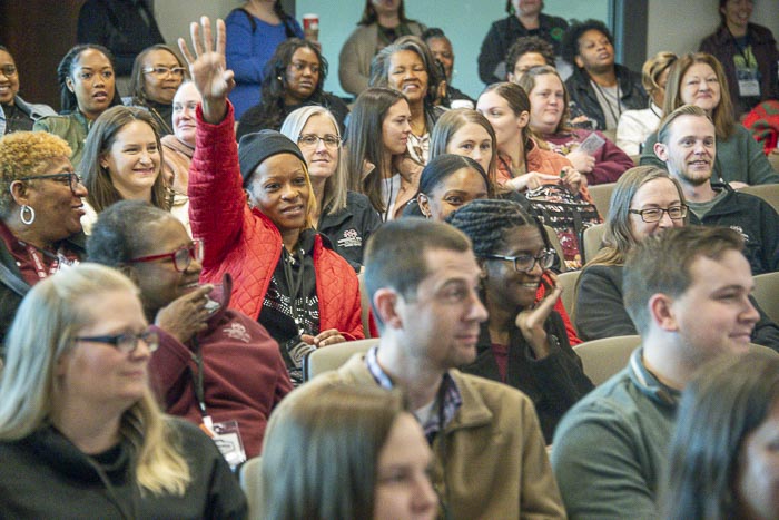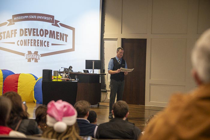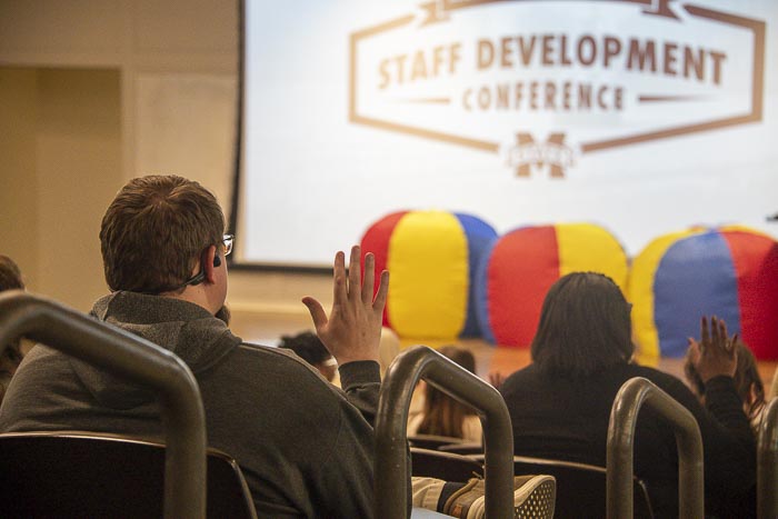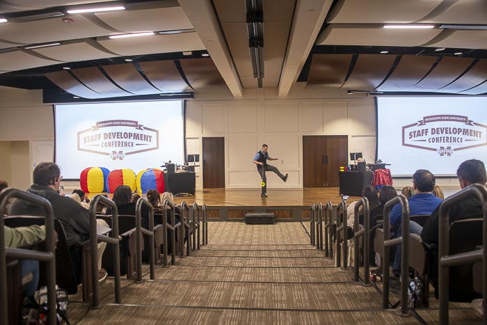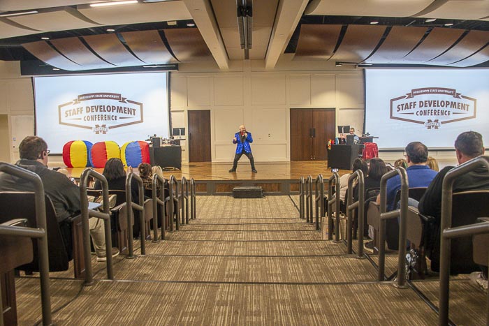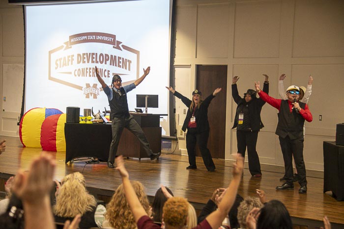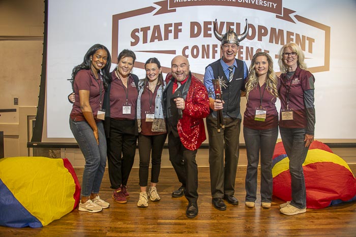 Group photo of the two keynote speakers as well as staff council members at SDC 2025 Four Staff council members pose for a group photo at SDC 2025 Group photo of friends at SDC 2025 Free parking award recipients pose for a group photo SDC 2025 Three friends pose for a photo at SDC 2025 Group photo of four people at SDC 2025 Group photo at SDC 2025 Three staff members pose for a camera at SDC 2025 Action shot of the keynote speaker at SDC 2025 Staff member engaging in the Keynote activity at SDC 2025 Action shot of the keynote speaker at SDC 2025 The Staff Council Chair giving a gift to the keynote speakers at SDC 2025 Nine staff members pose for a group photo at SDC 2025 Crowd shot at SDC 2025 Crowd shot of a a women raising her hand at the raffle at SDC 2025 Action shot of a presenter speaking at SDC 2025 Staff member engaging with the vendors at SDC 2025 Staff member enjoying a moment of laughter at SDC 2025 Check in at SDC 2025 University Provost at SDC 2025 Keynote presenter at SDC 2025 Keynote presentation at SDC 2025 Two staff members pose for the camera at SDC 2025 Candid shot at SDC 2025 Candid shot at SDC 2025 Check in table at SDC2025 Action shot of the keynote speaker at SDC 2025 MSU Provost speaking at SDC 2025 Classroom shot of lecturer at SDC 2025 Crowd shot at SDC 2025 Raffle winner at SDC 2025 Candid moment of staff member receiving her raffle prize at SDC 2025 Classroom self defense lecture at SDC 2025 Keynote speaker interacts with the crowd at SDC 2025 Staff member receives her raffle prize at SDC 2025 Staff member receives her raffle prize at SDC 2025 Staff members at SDC 2025 Three staff members pose for a group photo at SDC 2025 Lecture presenter at SDC 2025 Staff member interacting with vendor at SDC 2025 Crowd shot at SDC 2025 Friends posing for the camera at SDC 2025 Staff member at SDC 2025 Staff Council members drawing from a raffle at SDC 2025 Staff Council Chair at SDC 2025 Group photo of 2025-2026 Mississippi State University Staff Council